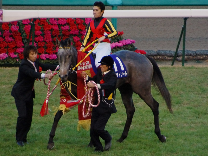 勝ったレーヴディソールは、栗東・松田博資厩舎の牝馬。父がアグネスタキオン、母がレーヴドスカーという血統。兄姉には、阪神JF2着のレーヴダムール、青葉賞勝ち馬・アプレザンレーヴ、きさらぎ賞2着のレーヴドリアン、すみれS勝ち馬・ナイアガラと父が違うのに全てオープンという素晴らしいファミリーですが、レーヴダムールとレーヴドリアンが死亡、アプレザンレーヴが屈腱炎と悲運が続いていましたが、ディソールが一族の悲願を達成しました。厩舎の先輩・ブエナビスタ、このレースの勝ち馬・ウオッカやアパパネのような更なる活躍を期待したいですね。POのたけうまさん、uniさん、はっしーさん、勝利本当におめでとうございます!!uniさんは、2008年のトールポピー以来のこのレース制覇となりました。